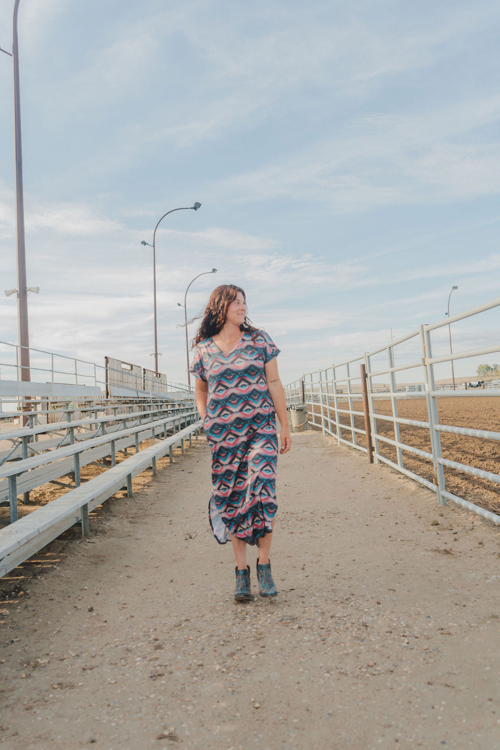 Experience the blend of comfort and style with this Selma Aztec Print Maxi Dress. The relaxed fit, crafted for the modern woman, offers a unique western aesthetic. Made from 78% Polyester, 18% Rayon, and 4% Spandex, this dress is perfect for work and other core season occasions. With pockets for added convenience and machine washable for easy care, this dress is designed to make you feel confident and uplifted. Enjoy the love and passion that we put into every piece.