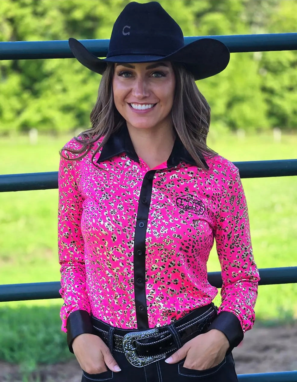 The “ORIGINAL” Pullover Button Up was invented by our Owner and Designer Lisa Bollin in 2018 after being so frustrated when getting her buttons hooked on the horn and popping her shirt open during a competition run. While designing this incredible shirt she made sure to add a longer back tail to stay tucked in, longer arm length for reaching and only using the highest quality stretch fabrics. The no-gapping front button placket has three functional buttons for easy on-and-off and six faux buttons that create the appearance of a classic button-down and so flattering. They are FUNCTIONAL and THE SAFEST SHIRT YOU'LL EVER WEAR COMPETING.